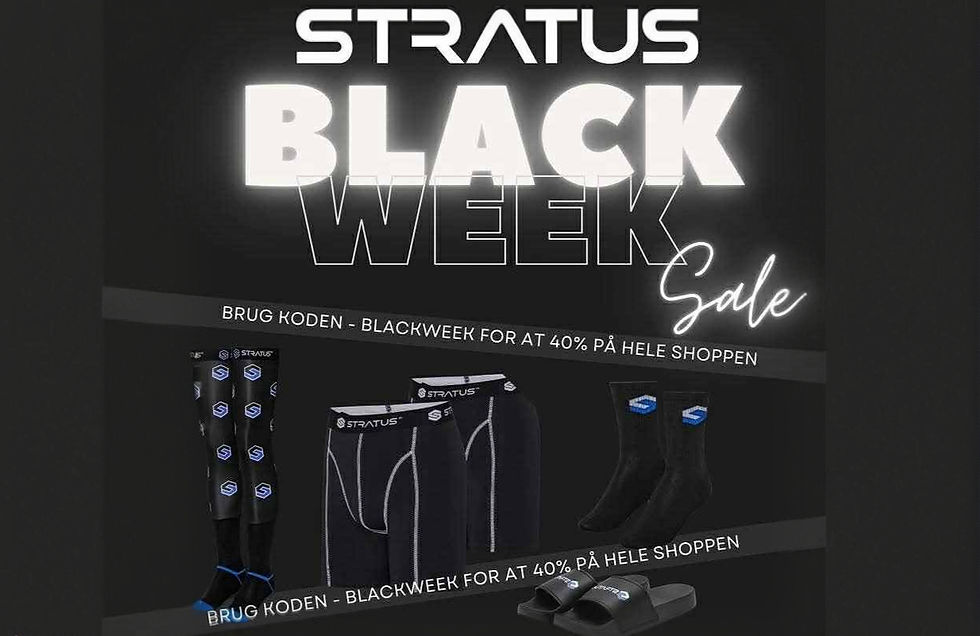 Skal du bruge underbukser, tøfler eller de bedste cross-sokker du kan klæbe til bentøjet på denne side af den sydlige halvkugle? Så kører Stratus med store besparelser hele den kommende uge! Brug koden BLACKWEEK og få 40% på hele shoppen - også på ting der er nedsatte! Så er julegaverne i hus. Også til chefen selv. Koden kan bruges fra mandag d. 24/11, til og med søndag d. 30/11!